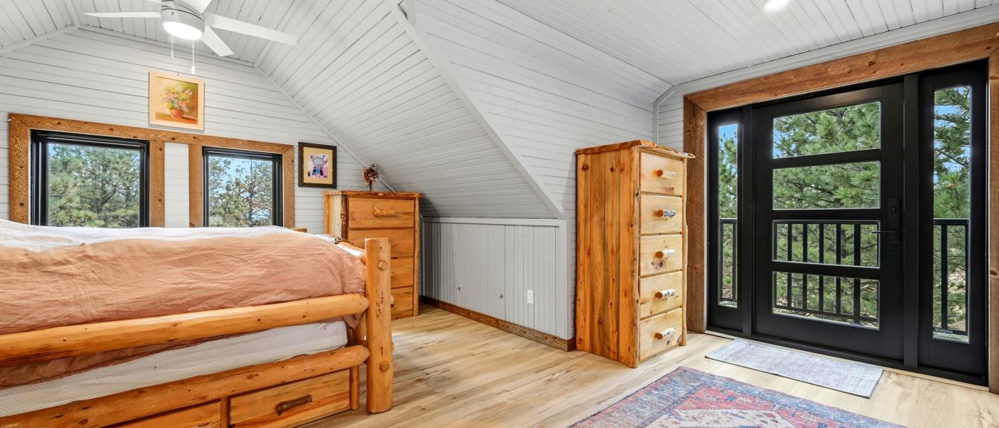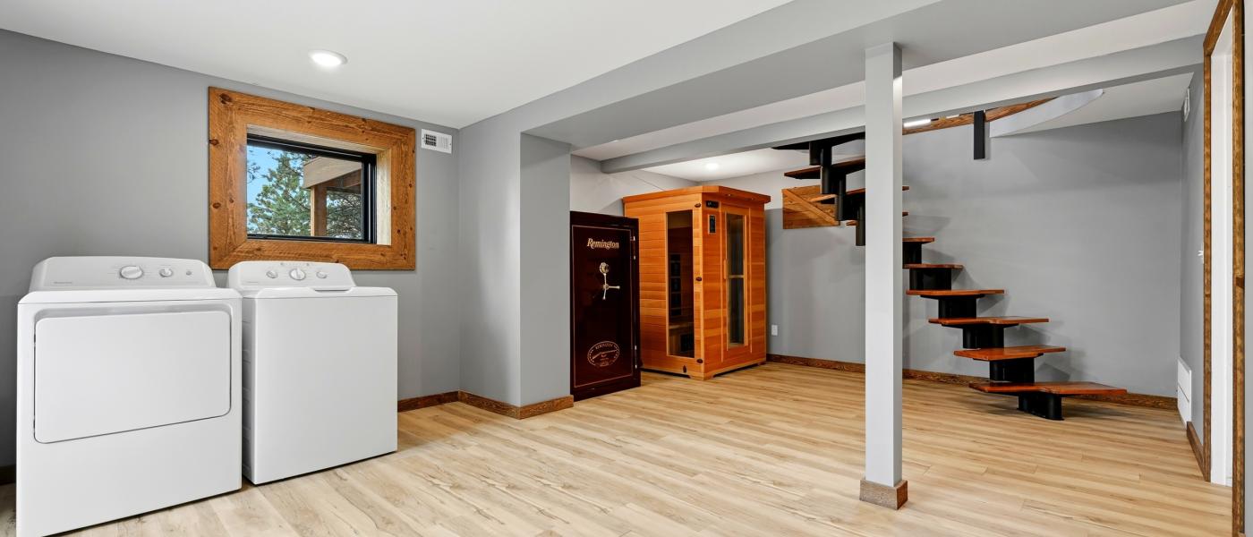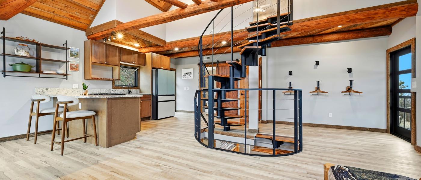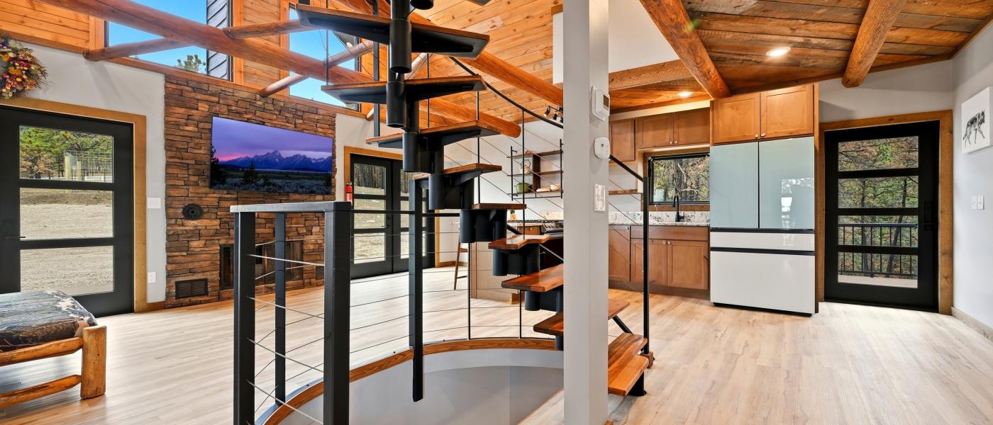 The home has been thoughtfully updated, featuring new windows, new doors, a new roof, fresh flooring throughout, upgraded appliances, a reverse osmosis system, a surround sound music system, and a new surrounding deck perfect for relaxing or entertaining. A spiral staircase connects the three floors, providing a bedroom on each level. Large windows throughout the home invite the beauty of the outdoors inside, showcasing breathtaking views of the Bighorn Mountains and the picturesque nearby foothills.