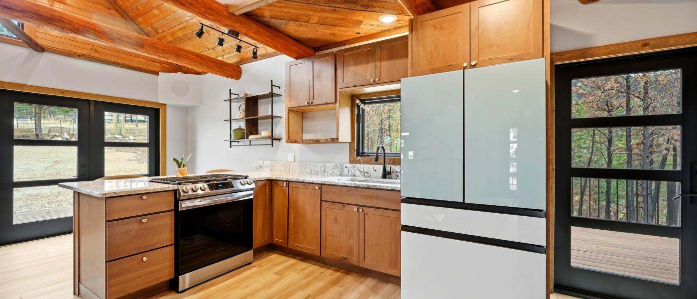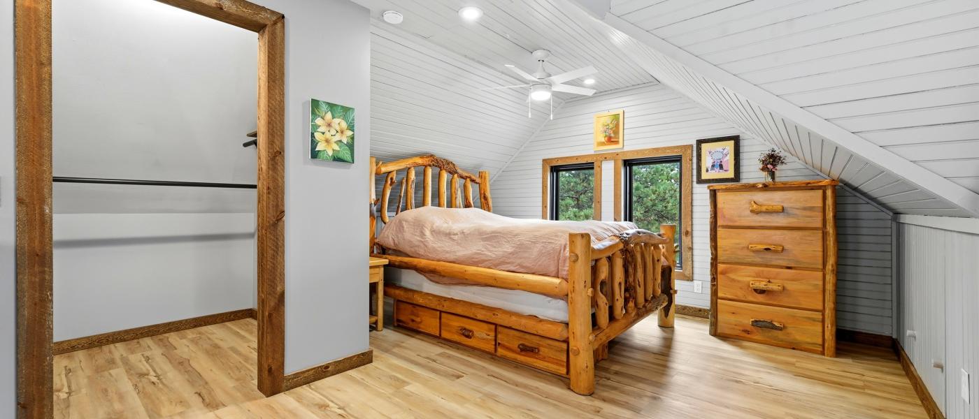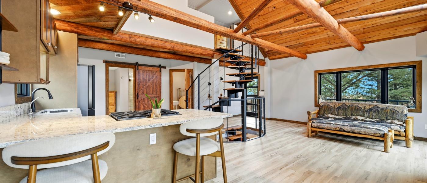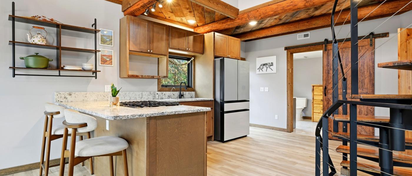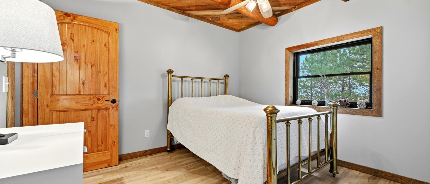 The home has been thoughtfully updated, featuring new windows, new doors, a new roof, fresh flooring throughout, upgraded appliances, a reverse osmosis system, a surround sound music system, and a new surrounding deck perfect for relaxing or entertaining. A spiral staircase connects the three floors, providing a bedroom on each level. Large windows throughout the home invite the beauty of the outdoors inside, showcasing breathtaking views of the Bighorn Mountains and the picturesque nearby foothills.