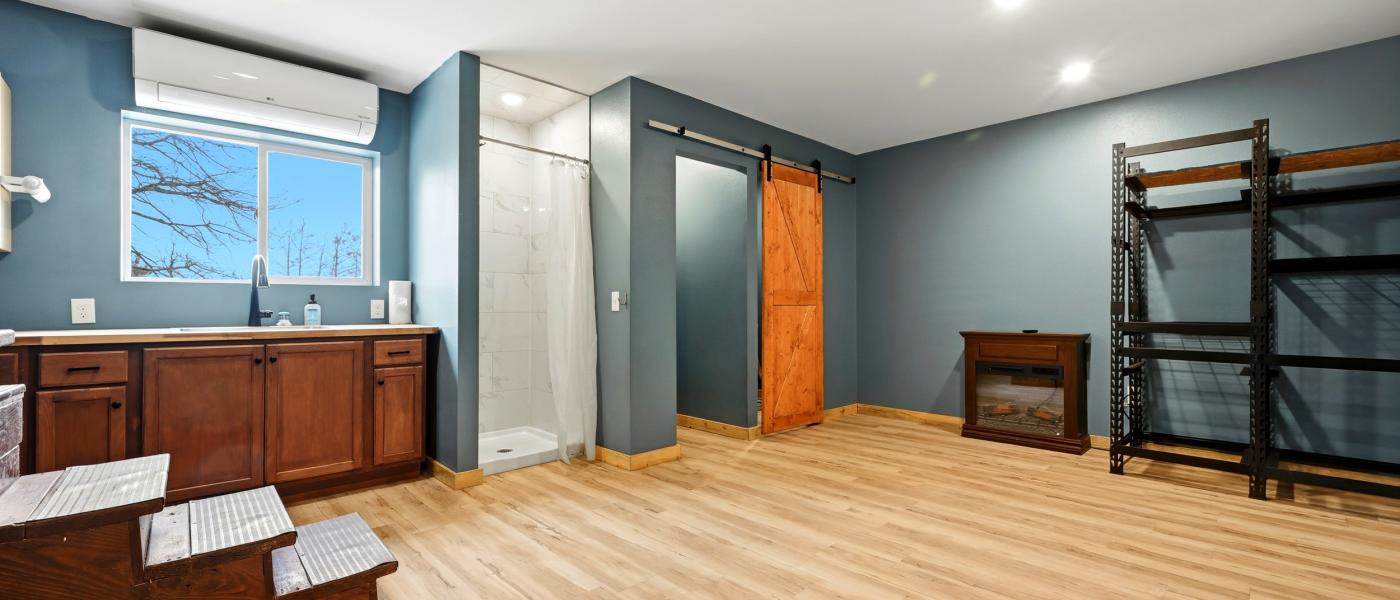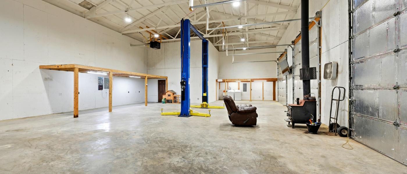 The impressive 2,400 square foot shop is fully insulated and heated, boasting 18-foot sidewalls and two 12-foot overhead doors for easy access. Additionally, this shop includes a one-bedroom, one-bathroom guest residence equipped with washer and dryer hookups, making it perfect for visitors or as a rental opportunity.
